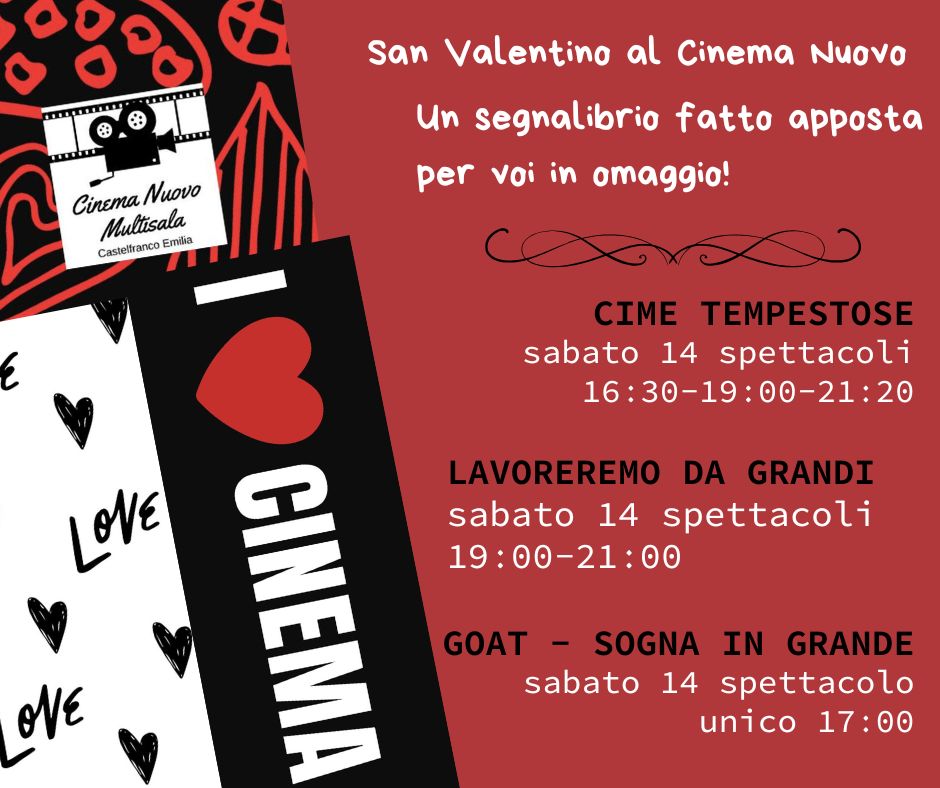 San Valentino al Cinema Nuovo! Domani 14 febbraio festa degli innamorati, per chi ama il cinema da noi troverà: