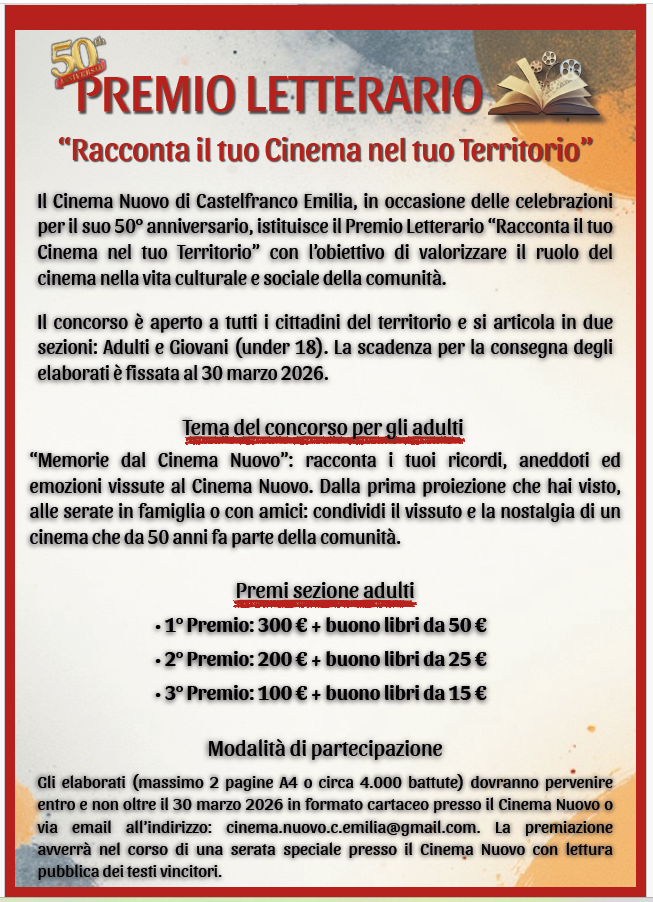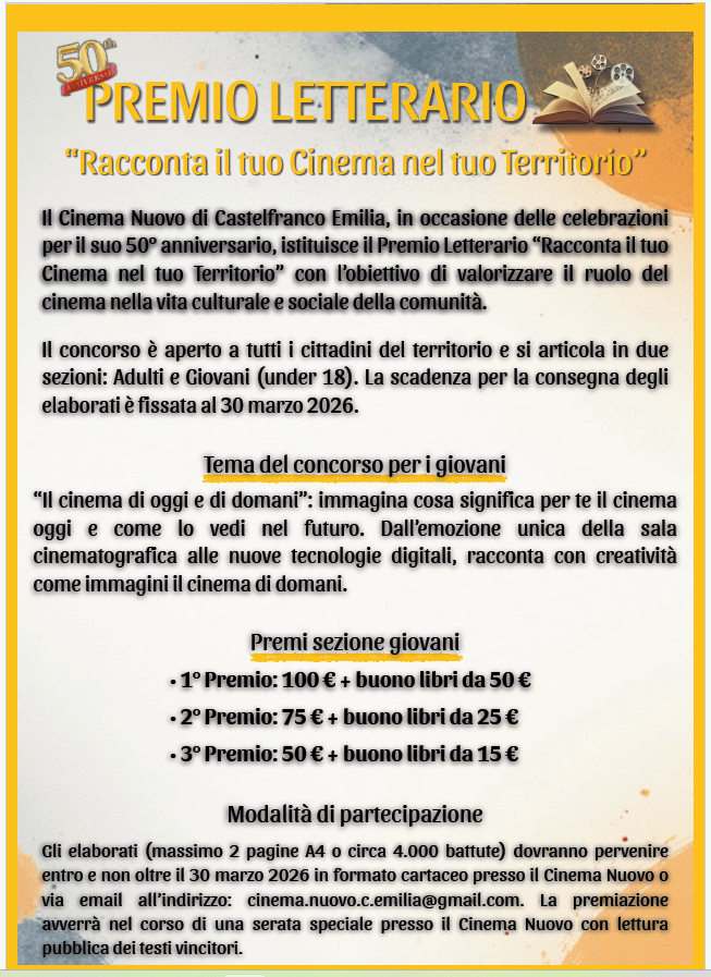 Il Cinema Nuovo per i suoi 50 anni istituisce