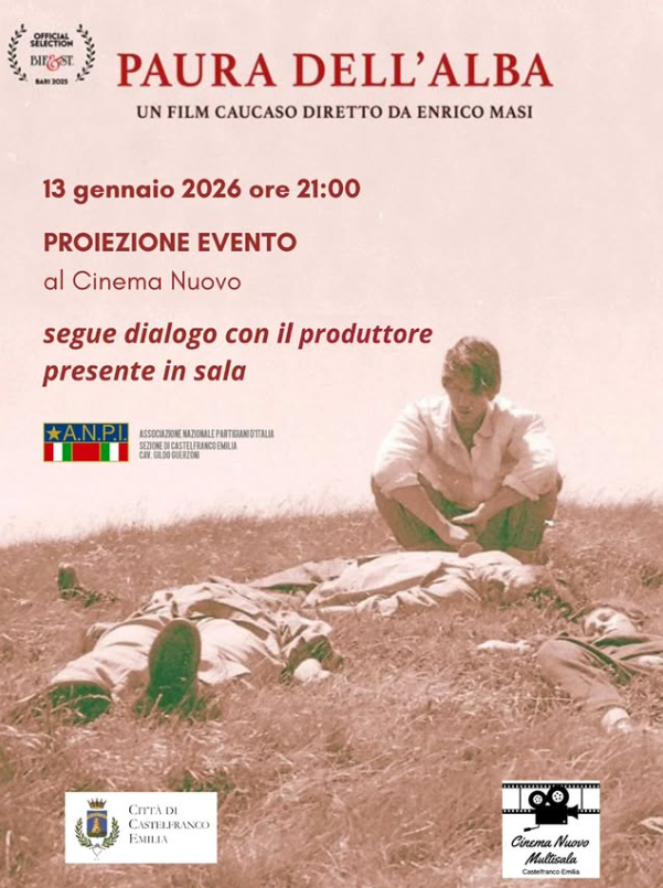 Il 13 gennaio al Cinema Nuovo alle ore 21:00 in collaborazione con ANPI Castelfranco Emilia proiezione evento di PAURA DELL'ALBA alla presenza del produttore che dialogherà con il pubblico.